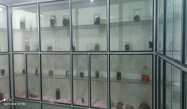 3. بخش جنین شناسی شامل 12 عدد جنین انسان در حالات مختلف و مراحل رشدی متفاوت است که برخی از آنها بدلیل ناهنجاریهای ژنتیکی و مشکلات ساختاری حائز اهمیت اند. 19 عدد جنین حیوانات مختلف نیز در این بخش قرار گرفته است.