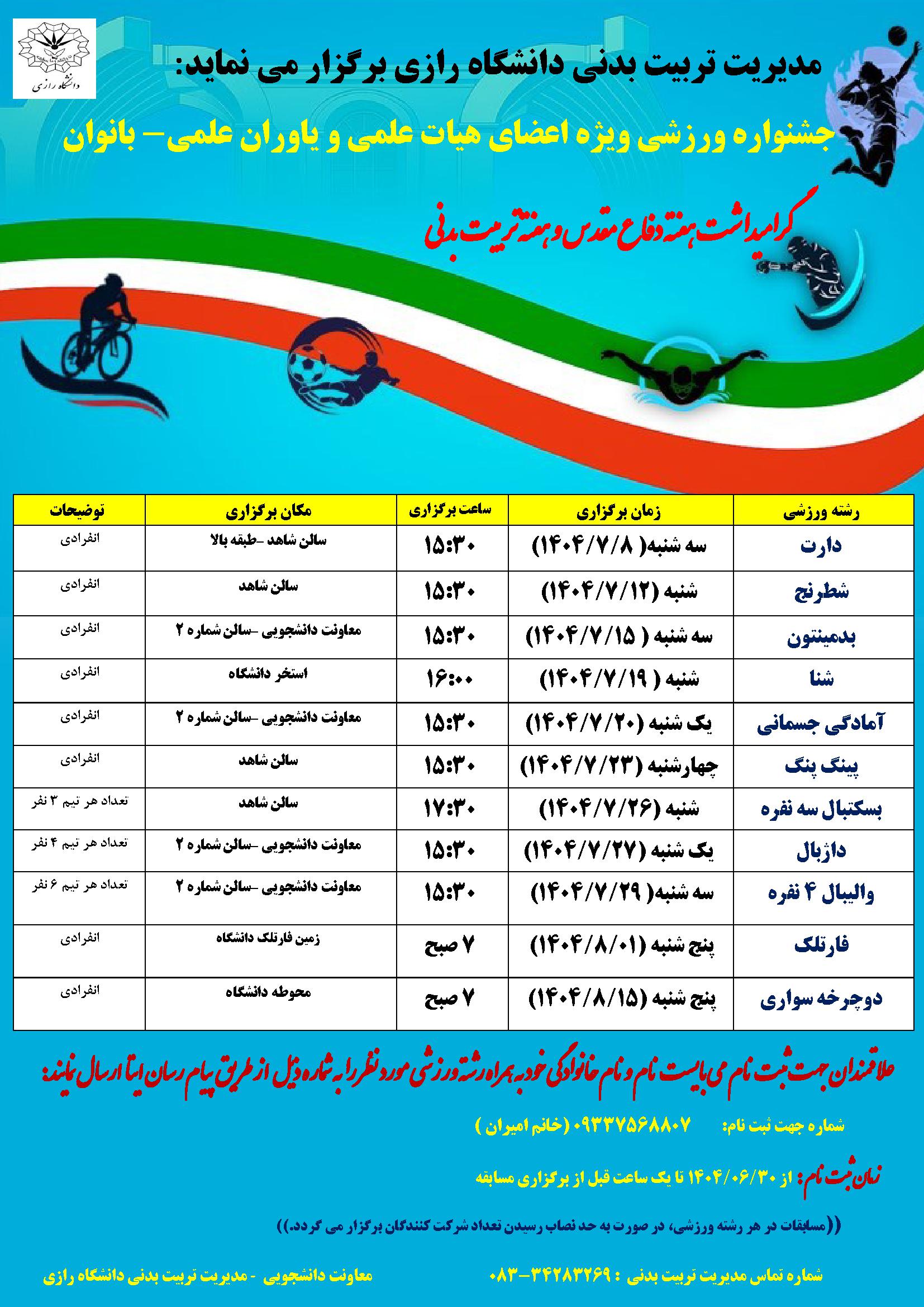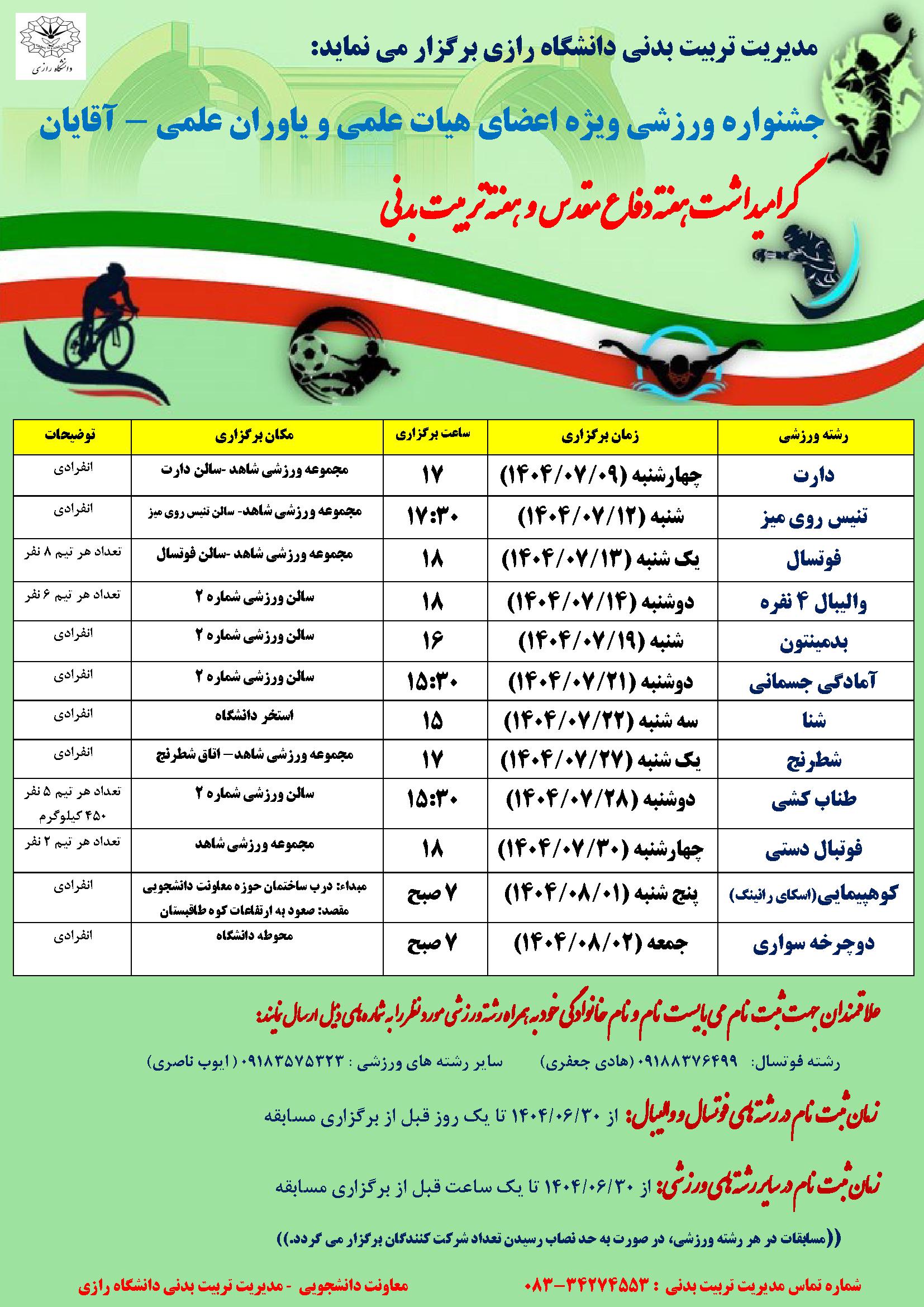جشنواره ورزشی ویژه اعضای هیأت علمی و یاوران علمی؛ گرامیداشت هفته دفاع مقدس و هفته تربیت بدنی - پرتال اصلی دانشگاه رازی