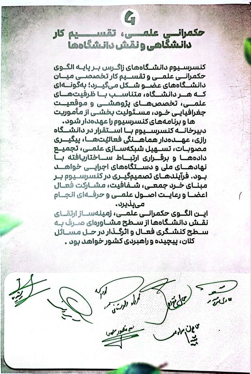 دانشگاه‌های واقع در محور زاگرس با درک مسئولیت علمی، اجتماعی و ملی، خود بر ضرورت ایجاد یک چارچوب منسجم، نهادمند و فرابخشی تأکید دارند؛ چارچوبی که بتواند ظرفیت‌های علمی دانشگاهی را به فرآیند‌های تصمیم سازی سیاست‌گذاری و اقدام اجرایی در سطح ملی و منطقه‌ای پیوند دهد. در همین راستا، کنسرسیوم دانشگاه‌های زاگرس به عنوان پاسخی، علمی، ساختارمند و آینده‌نگر به این ضرورت شکل می‌گیرد؛ بستری برای هم افزایی توان دانشگاه‌ها، شکل‌دهی به زبان مشترک علمی و برقراری تعامل مؤثر و مستمر با بدنه اجرایی دولت و نهاد‌های سیاست‌گذار کشور.
